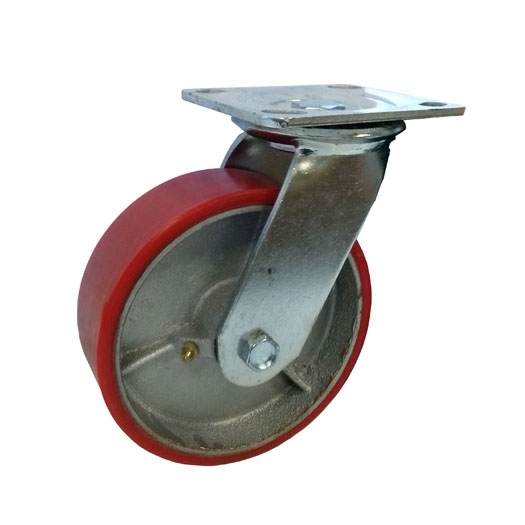 Колесо полиуретановое большегрузное поворотное SCp93 для тачек и тележек является самыми грузоподъемным из всех колес, представленных в интернет-каталоге. Чугун служит основой для производства обода поворотных полиуретановых колесных опор SCp93.