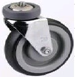 Поворотные, термо-пластичная серая резина, полипропиленовый обод, крепление с болтом в комплекте, кольцо, шарикоподшипник.