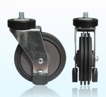 Колесная опора для траволатора поворотная, обод - из полипропилена, 3 реборды - из полиуретана, крепление с болтом в комплекте, кольцо, шарикоподшипник.