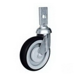 Поворотные, термо-пластичная серая резина, полипропиленовый обод, крепление с цапфой, шарикоподшипник.