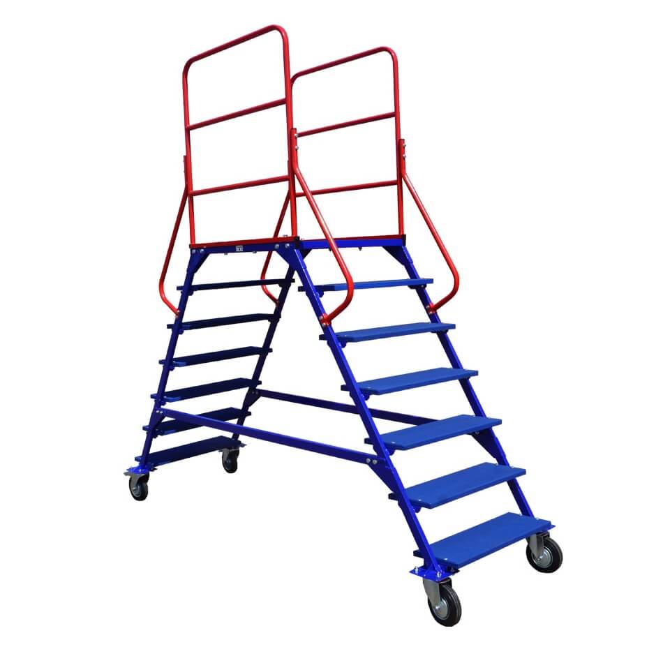 На лестницу рекомендуется устанавливать платформенные колесные опоры ф160 мм (два неповоротных и два поворотных с тормозом. Для обеспечения хорошей маневренности мобильной лестницы можно установить четыре поворотных колеса с тормозом.