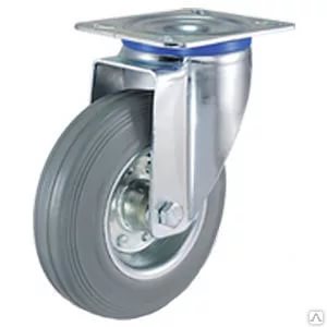 Шинка из полуэластичной серой резины, обод прессованный из листовой стали. Двухрядный шариковый подшипник в поворотном механизме защищен пластиковым пыльником. Не пачкают светлый пол.
