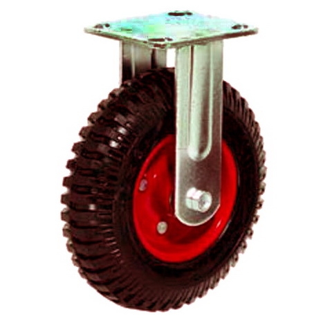 Колесные опоры неповоротные платформенного крепления. Литая протекторная резина, цвет - черный. Обод - стальной прессованный.