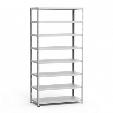 8 полок, 4 стойки, 4 подпятника, 16 уголков жесткости, 64 компл. крепежа.| Тип стеллажей | Болтовое соединение |
