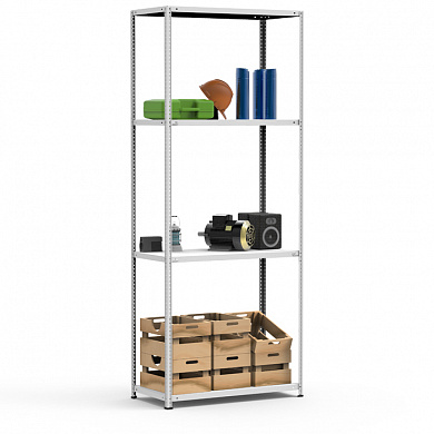 4 полки, 4 стойки, 4 подпятника, 16 уголков жесткости, 64 компл. крепежа.| Тип стеллажей | Болтовое соединение |