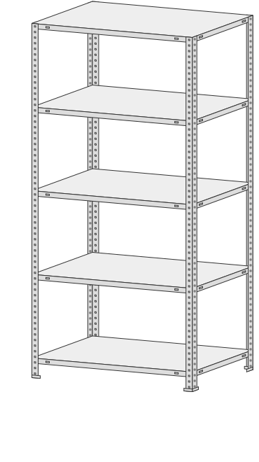 Несмотря на надёжность, металлоконструкция весит не много. Она имеет болтовое соединение, поэтому её сборка не занимает много времени. Детали окрашиваются в светло-серый цвет (7032 по каталогу RAL). Полимерно-порошковое покрытие не только улучшает внешней вид стеллажа, но также защищает его от воздействия коррозии и механических повреждений.