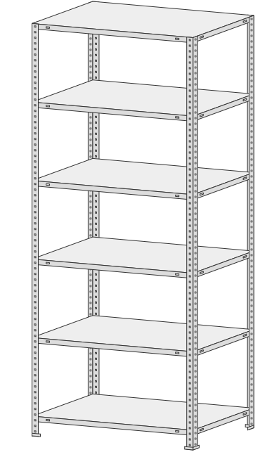 4 полки, 4 стойки, 4 подпятника, 16 уголков жесткости, 64 комп. крепежа.| Тип стеллажей | Болтовое соединение |