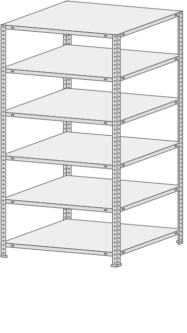 4 полки, 4 стойки, 4 подпятника, 16 уголков жесткости, 64 комп. крепежа.| Тип стеллажей | Болтовое соединение |