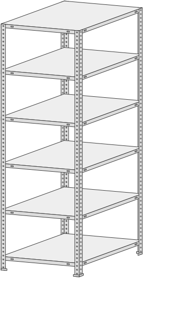 4 полки, 4 стойки, 4 подпятника, 16 уголков жесткости, 64 комп. крепежа.| Тип стеллажей | Болтовое соединение |